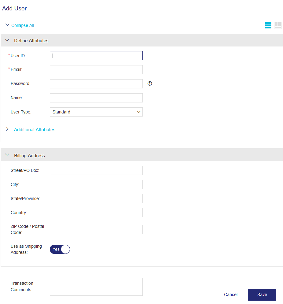 >Select Yes to use the same address for both billing and order shipment. > Select No to expand the pane and specify a different Shipping Address for receiving orders. |