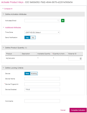 | Send Notification | Send email notification to the entitlement contact after activation. |