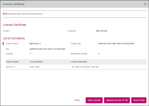 View and email the license certificate of the activation. Refer to Viewing the License Certificate for details. |