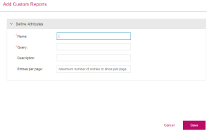 From the navigation pane, select Configuration > Custom Reports to view the Custom Reports page. The Add Custom Report button on this page is used to create a custom report using the page given below: