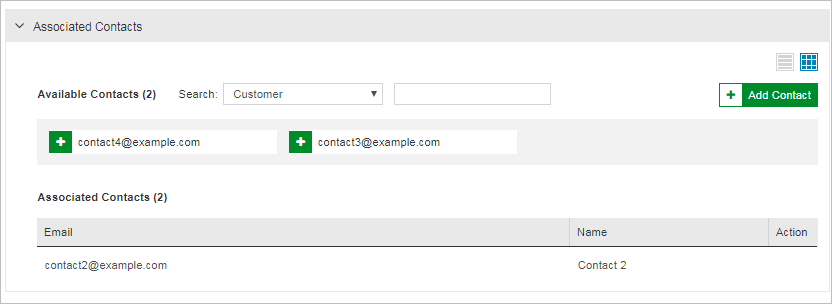 >Use the Add Contact button in this pane to create a new contact and associate it with the customer.