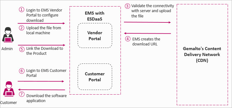 ESDaaS provides an integrated experience of uploading and downloading content securely using Sentinel EMS.
