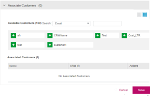 After associating downloads, you can use the Associate Customers pane displayed below to associate customers with the download definition.