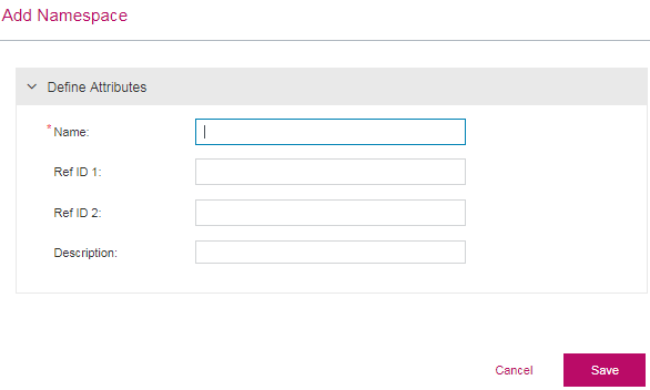 | Name | Name of the namespace. The validity of the namespace name is enforcement-specific. This means that the validity of the namespace name depends on the enforcement in use. | Required |