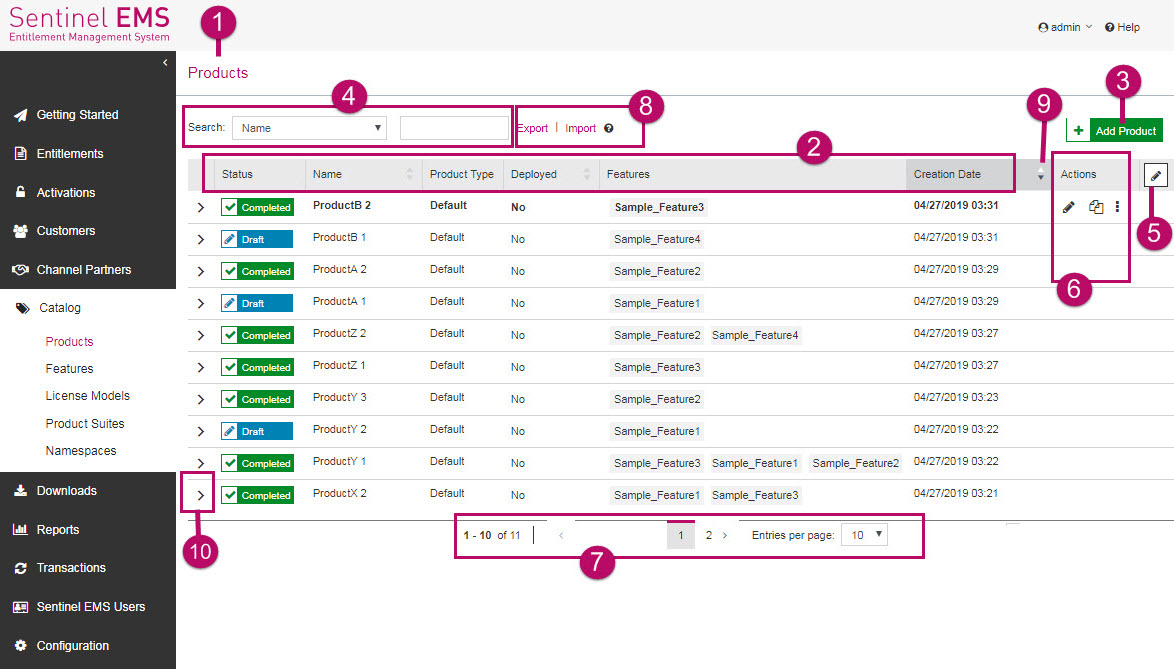 The Sentinel EMS portal is used by software vendor's personnel, primarily for managing products and entitlements. This page includes the following: