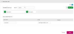 After providing the attribute details and assigning permissions, use the Associate Users pane displayed below to associate users with the role you are creating:
