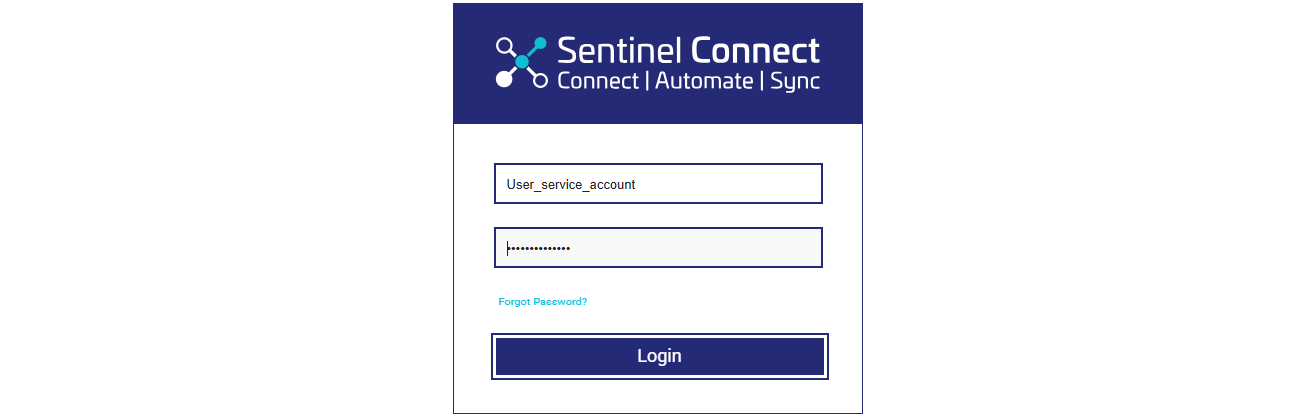 The Service Account is required for API-based automation and integration with business systems. This account is used for system-to-system communication and does not provide access to Sentinel Connect.