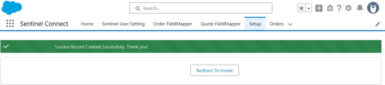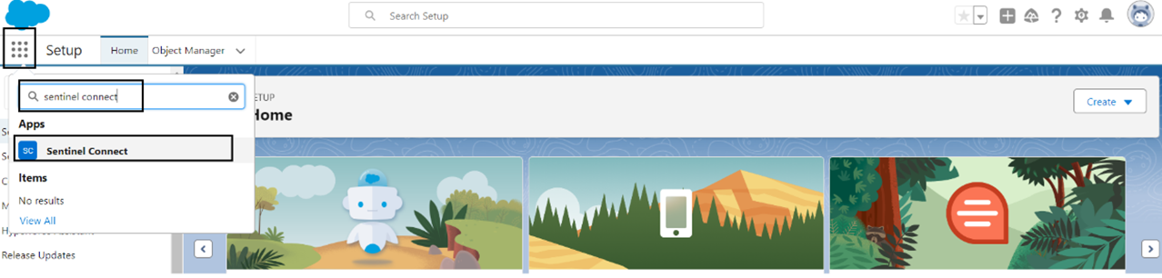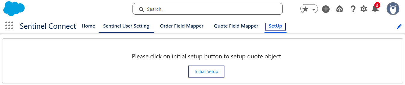 1.In the Sentinel Connect app (in Salesforce), navigate to the SetUp tab.