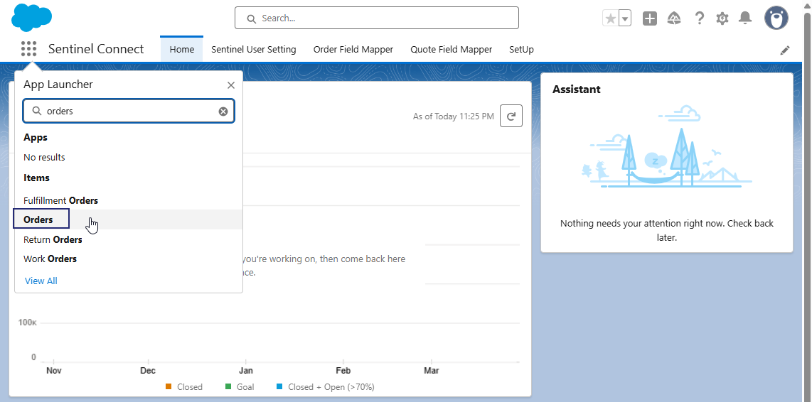 13. In the Sentinel Connect app (in Salesforce), navigate to Orders, and select the Details tab.