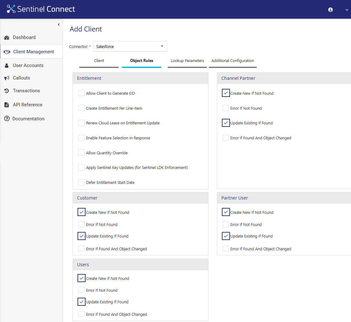 This document guides you through the essential steps for integrating Sentinel Connect with Salesforce as your business system, enabling you to automate entitlement processing and synchronize data across systems. If you need assistance with other business systems, such as Microsoft Dynamics, SAP, or Zuora, contact your Thales sales representative. |