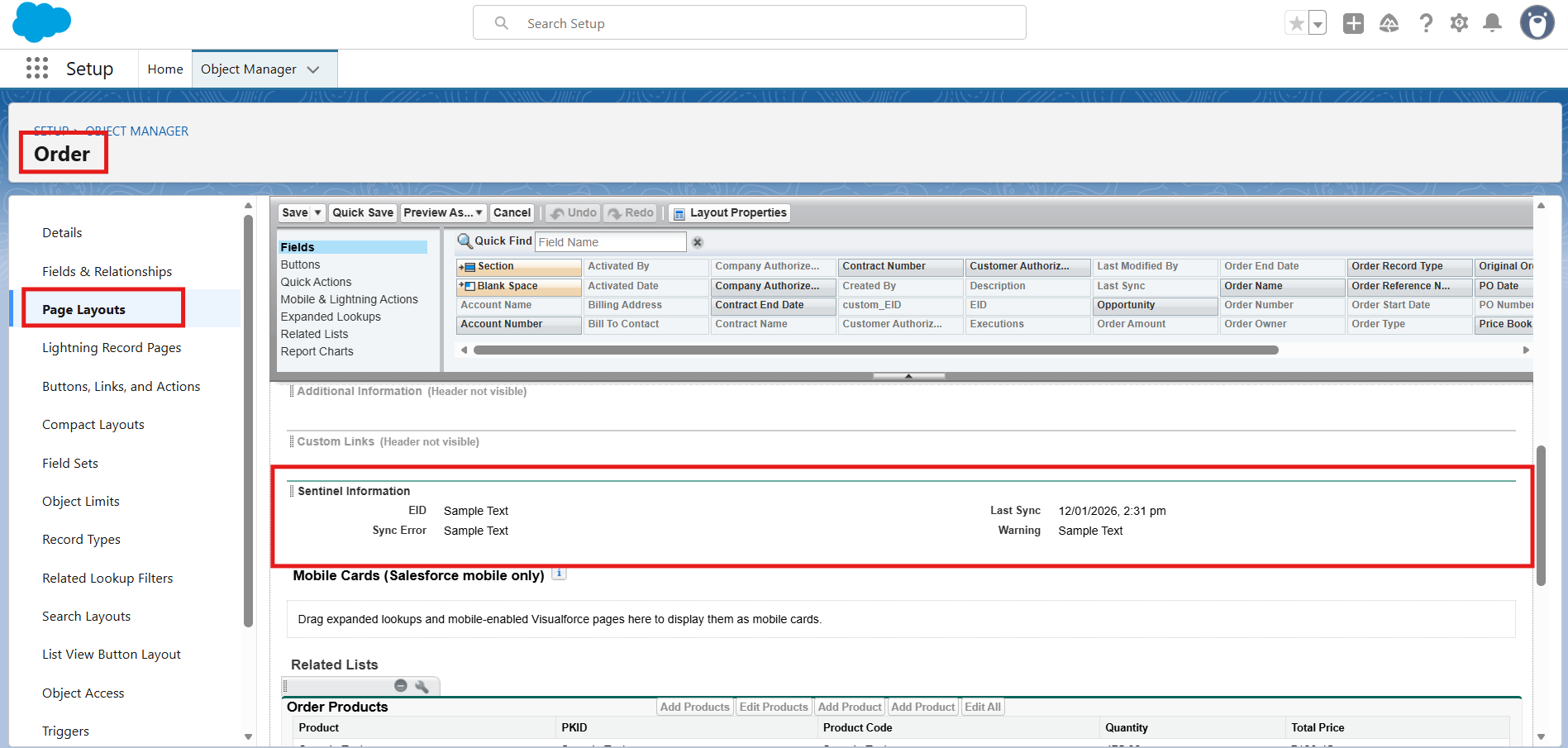 •Order Layout:: Adds the following fields to the Order object layout: