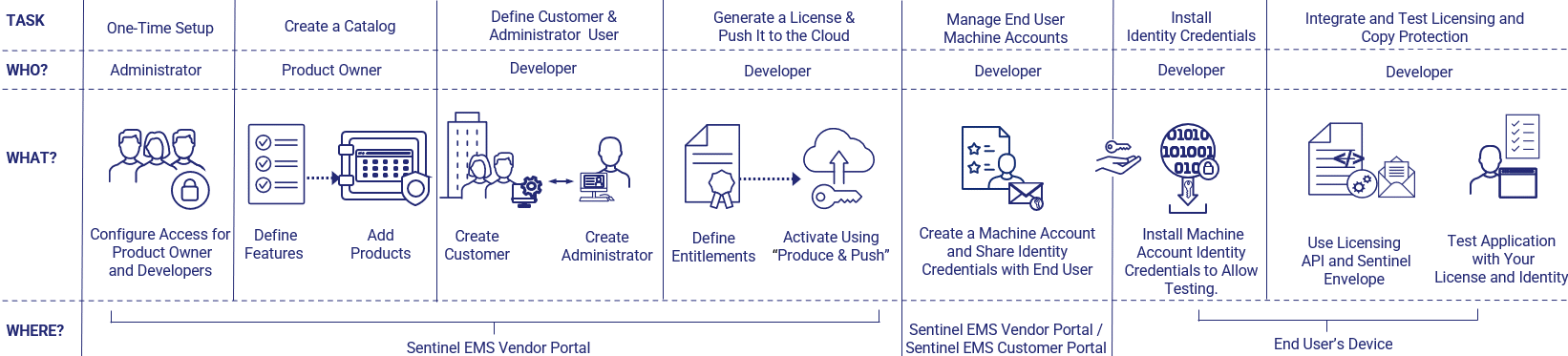 Learn about the different personae in the Sentinel EMS and Sentinel LDK workflows
