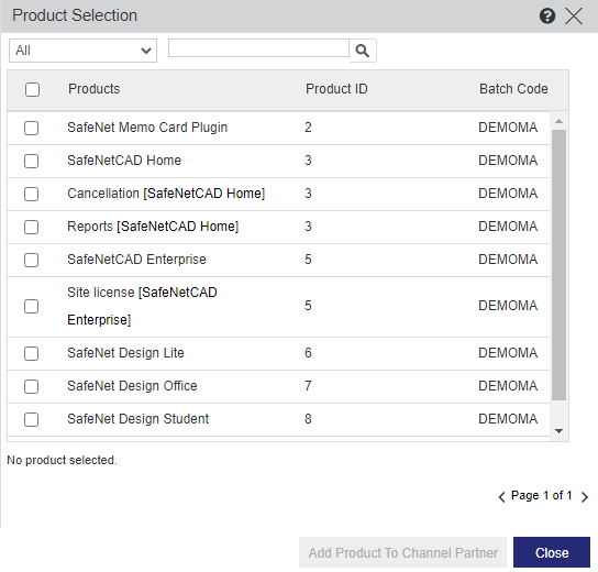 b.(Optional) In the search box at the top of the Product Selection dialog box, enter the search criteria. You can: