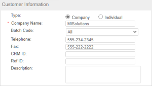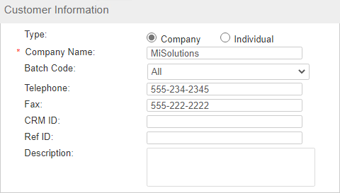 2.In the Customer Information pane, specify the customer Type and enter the required details.