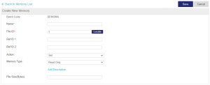 The Create New Memory area enables you to define a new Dynamic Memory file for the specified batch code.