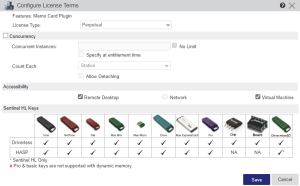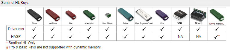 Sentinel HL (HASP Configuration) keys only. |
