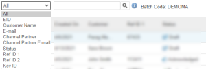 | Channel Partner E-mail | Searches by channel partner e-mail address. |