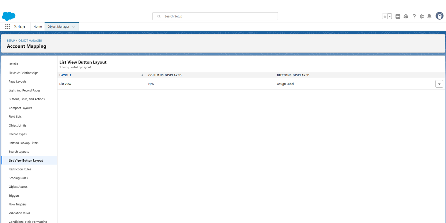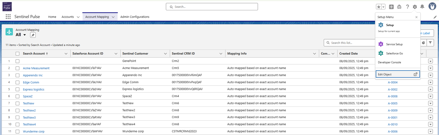 2.From the Setup Menu, choose Edit Object to open the Object Manager tab for Account Mapping.