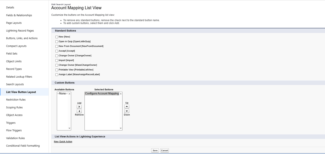 •Under Custom Buttons, move Configure Account Mapping from Available Buttons to Selected Buttons.