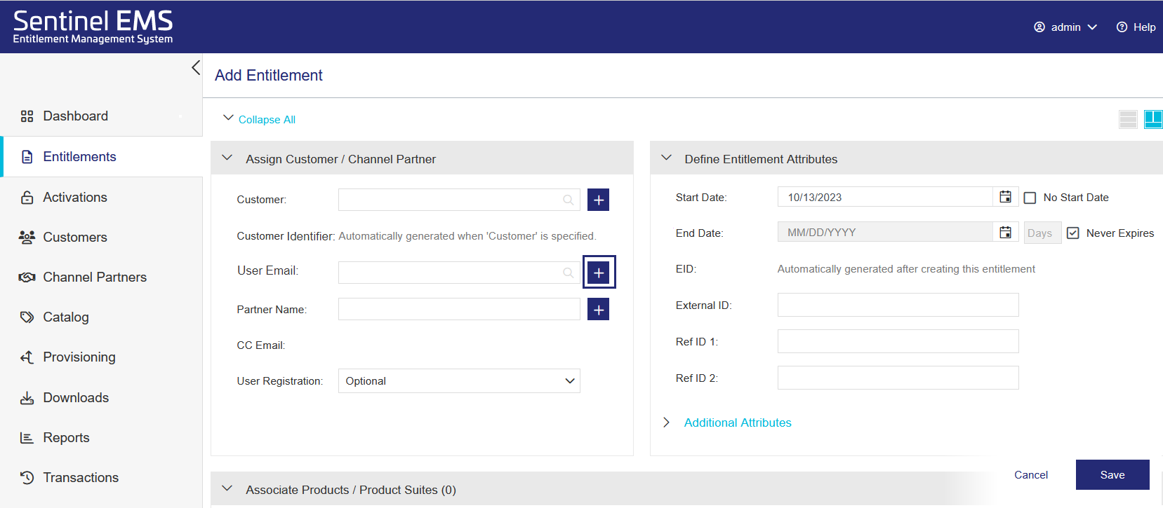 a. In the Add Entitlement page, next to the User Email field, click Add User