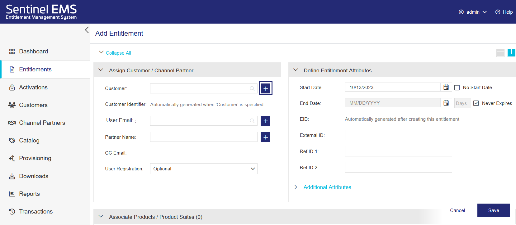 a. In the Add Entitlement page, next to the Customer field, click Add Customer