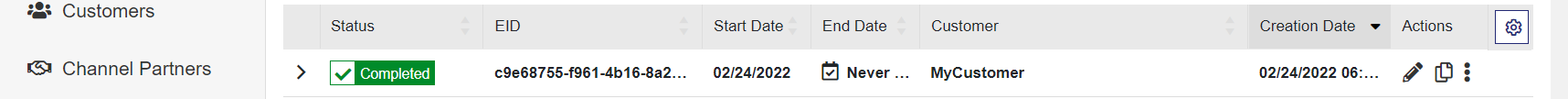 8.In the Products page, for the product you created, in the Actions column, click the Complete