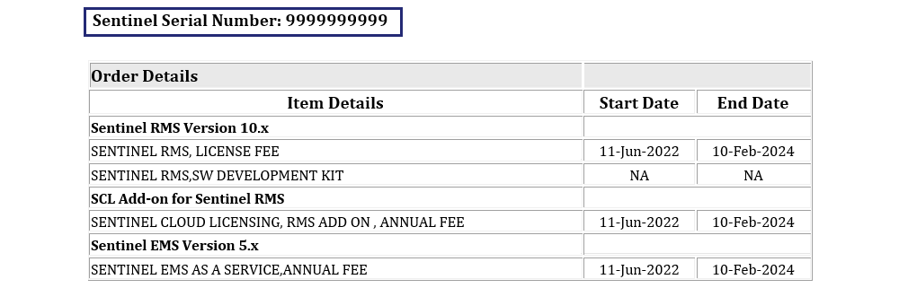 1.Open the Thales Sentinel order email. In the Download Details table, click the Download link corresponding to the Sentinel RMS SDK (Windows) field.
