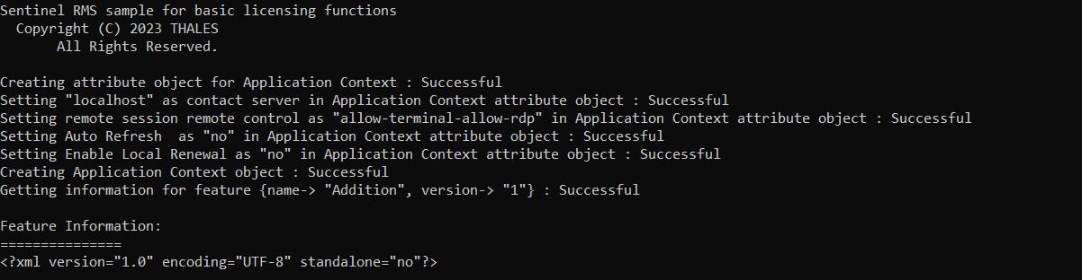 Next, you need to run the sntl_demo.exe sample application to consume licenses. To run the sntl_demo.exe file: